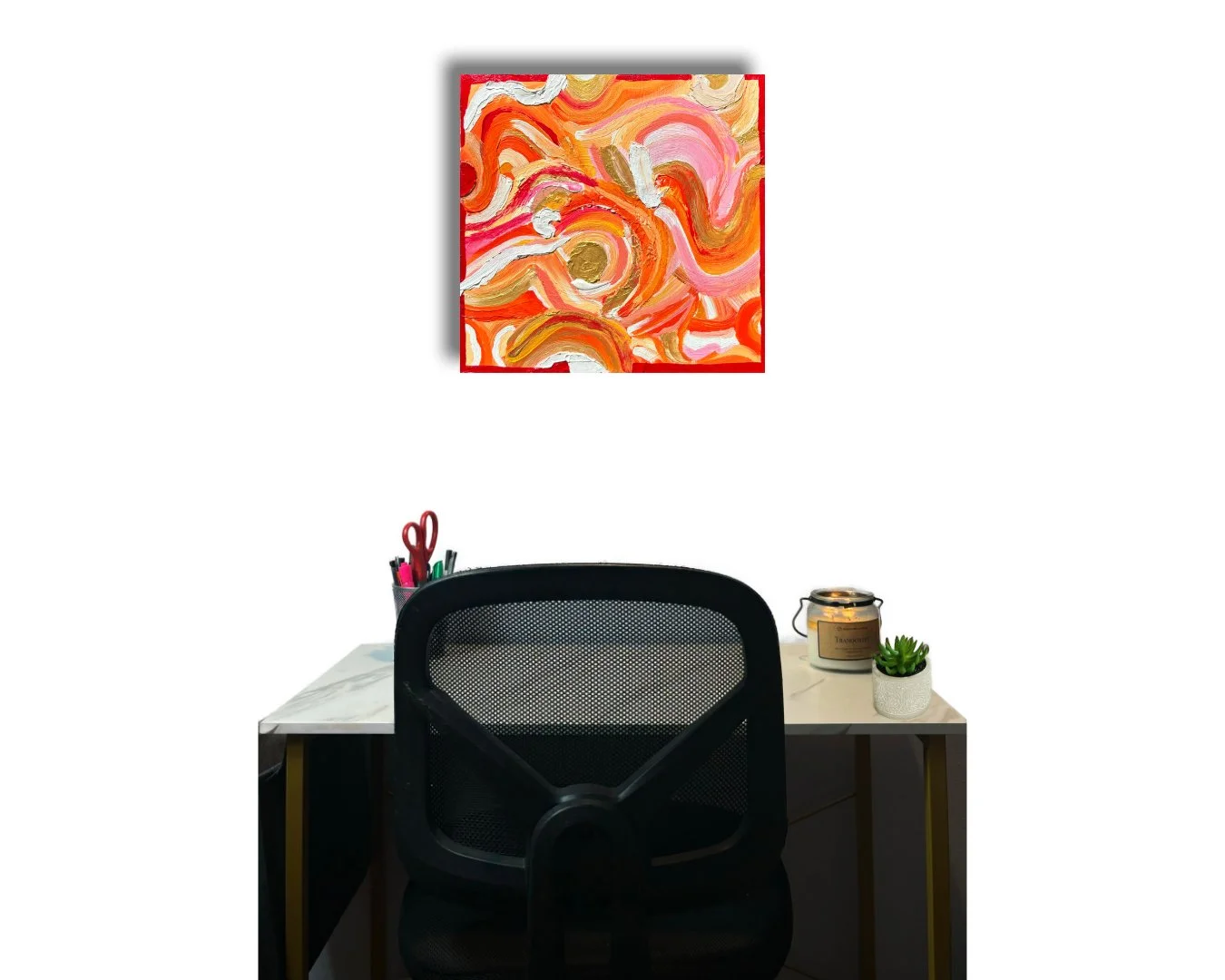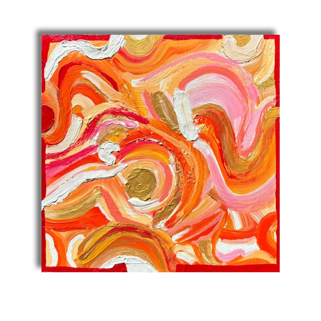 A harmonious blend of pastel pinks and rich orange tones captures bliss and fulfillment while shimmering accents of gold symbolize the realization of aspirations. The dynamic brushstrokes and layered textures convey a sense of movement and vitality, making it a striking testament to growth and possibility.